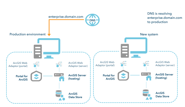 - Bei Verwendung von ArcGIS Web Adaptor müssen Sie den Web Adaptor bei den neuen Computern registrieren.